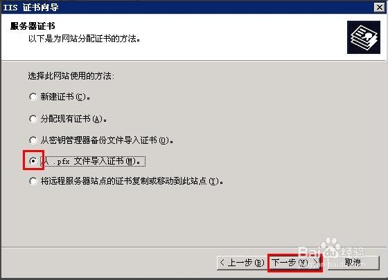 4.选择“从.pfx文件导入证书”,点击下一步: